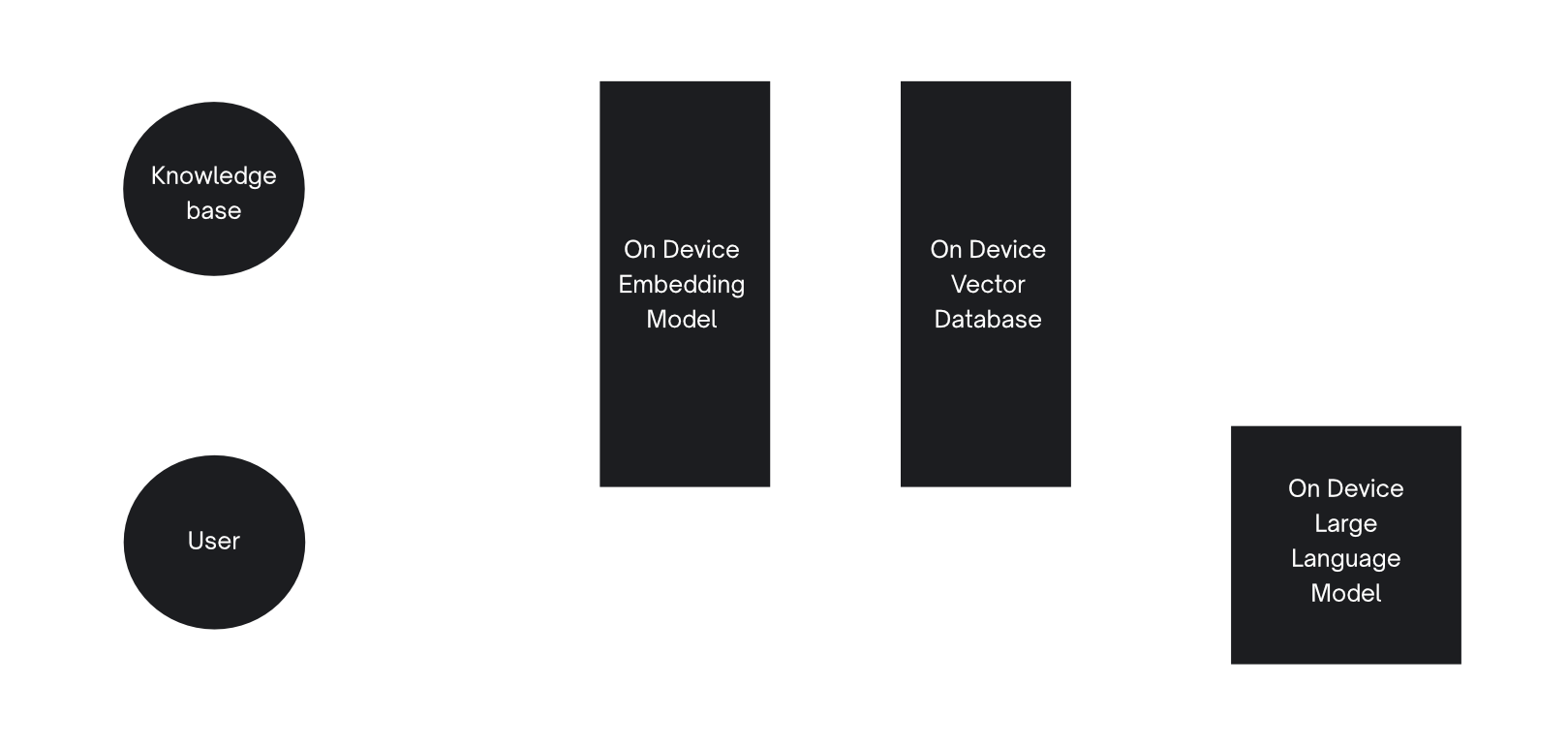 This is the architecture we were able to get to with this project. However, it's worth noting that, on lower-powered devices, such as less powerful mobile phones, it may not be possible to run the LLM locally due to the resources required, so it's also worth considering a hybrid approach.